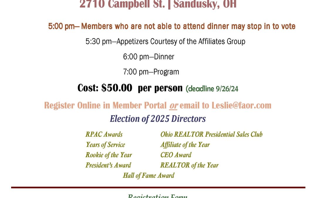 2024 Annual Membership Meeting & Awards Banquet by Anastasia Early | Oct 8, 2024 | Members Click Here to Download Flyer